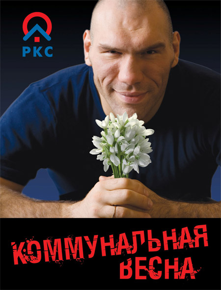 С 1 марта ОАО "Российские коммунальные системы" (РКС) запускает акцию "Коммунальная весна", в рамках которой боксер Николай Валуев будет подтягивать платежную дисциплину российских граждан.В нескольких российских городах установят рекламные щиты, на которых будет изображен улыбающийся боксер-тяжеловес ростом 213 см с букетом подснежников.