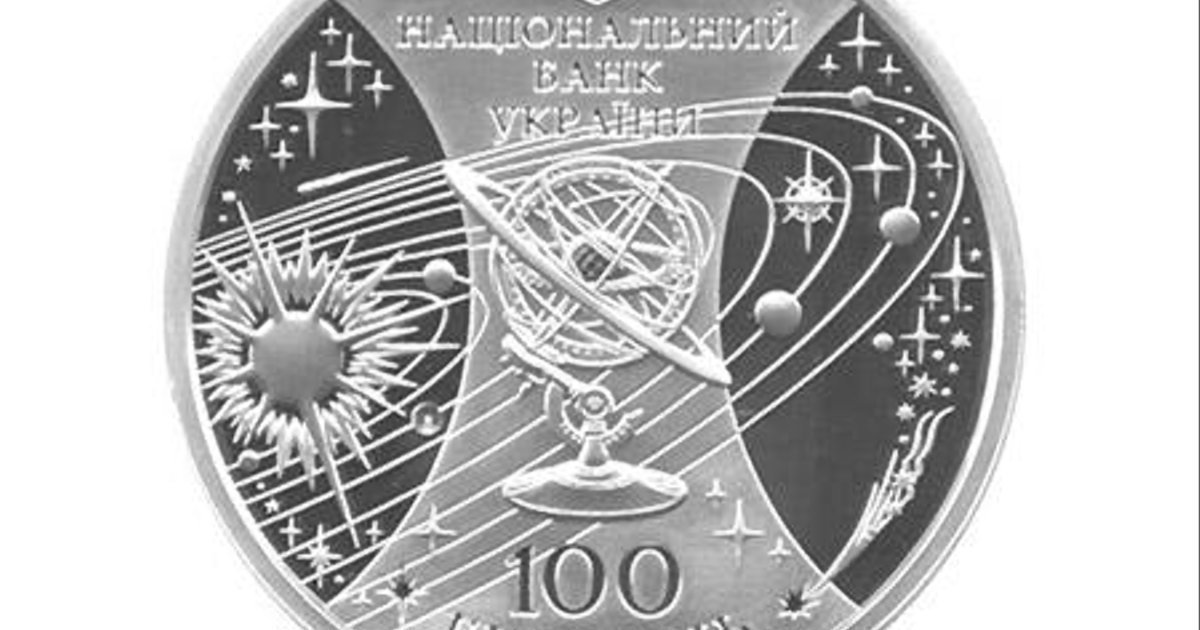 Национальный банк Украины выпустил килограммовую серебряную монету, украшенную голубым топазом в честь Международного года астрономии, провозглашенного ООН.