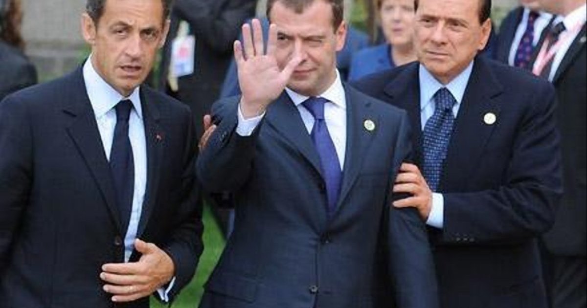 В сети появились фотографии, на которых якобы пьяного президента России Дмитрия Медведева поддерживают с двух сторон итальянский премьер Сильвио Берлускони и президент Франции Николя Саркози. Действие происходит на саммите G8 в Италии. Снимки вызвали бурное обсуждение в блогах и на форумах.