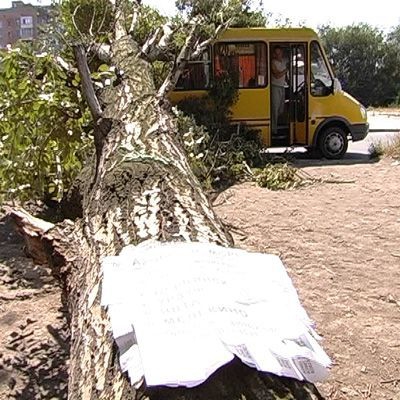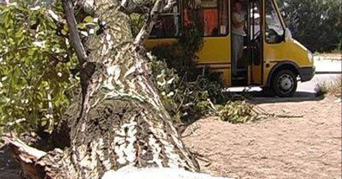 В Макеевке тополь упал на маршрутку. ФОТО.