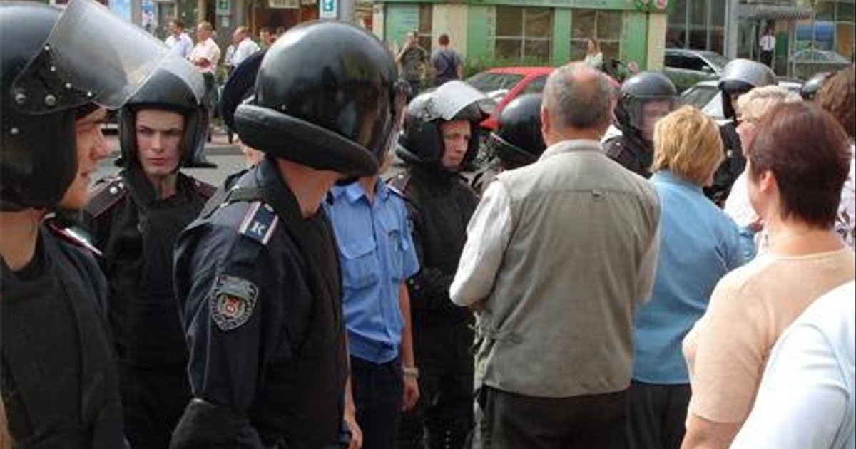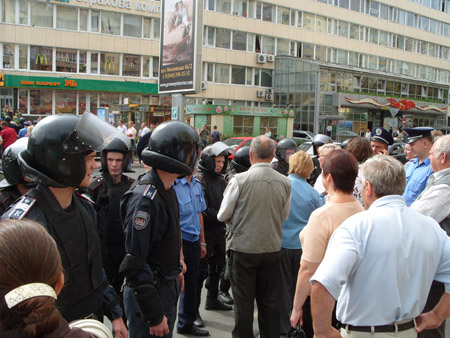 Пикетчиков, требовавших возврата депозитов у "Укрпромбанка", разогнала милиция. ФОТОрепортаж.
