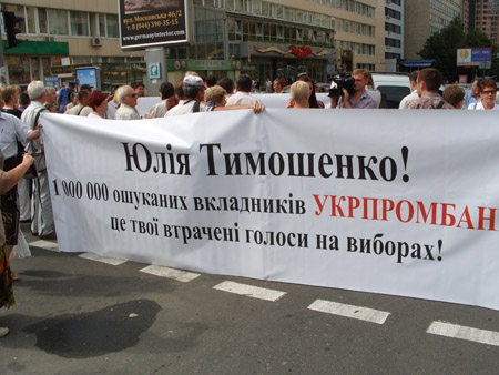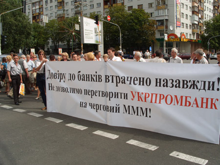 22 июля в связи с окончанием моратория в "Укрпромбанке" на удовлетворение требований вкладчиков состоялась акция гражданского протеста вкладчиков у здания банка на Л.Украинки, 26.
