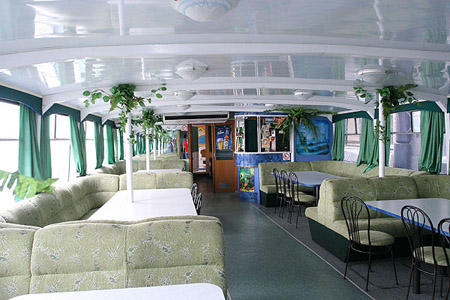 Есть прогулки на речном трамвае: 1 час - 250р (детский - 150р).