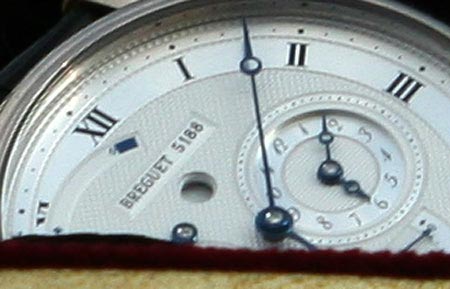 У патриарха Кирилла классическая модель Breguet: корпус сделан из белого золота, ремешок - из кожи крокодила, механизм автоматический, есть будильник.