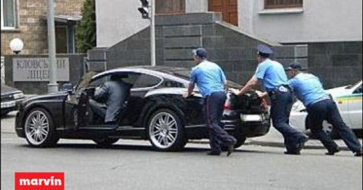 чому воно не їде: по-перше вони не вдягнули лижі, по-друге - за кермом "тормоз".