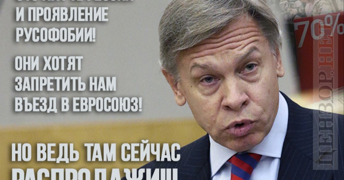 Этот 3,14дарас по фамилии П(ет)ушков постоянно торчит в ЕС и держит там семью, а сам ведет на брехун-ТВ передачу о "враждебности Запада к рюському народу" - зарабатывает вранъем на квартиры и поездки "во враждебном западном мире." Чудны дела твои, Господи!