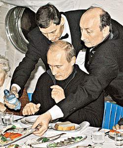 Прошлым летом Путин был на военных учениях на Дальнем Востоке. Еще рвались гранаты - зачищали недобитого «условного противника», - а ВВП отправился с солдатиками в поле обедать. (Под грохот канонады эта трапеза в точности походила на знаменитый завтрак мушкетеров в осажденном бастионе.) В поле кипели походные котлы с борщом и кашей. Путина тоже кормили из общего котла. А за котлом приглядывали президентские медики, то и дело беря пробы. Правда, Путин за разговорами с солдатами не очень-то налегал на борщ, все черный хлеб по кусочку отщипывал.