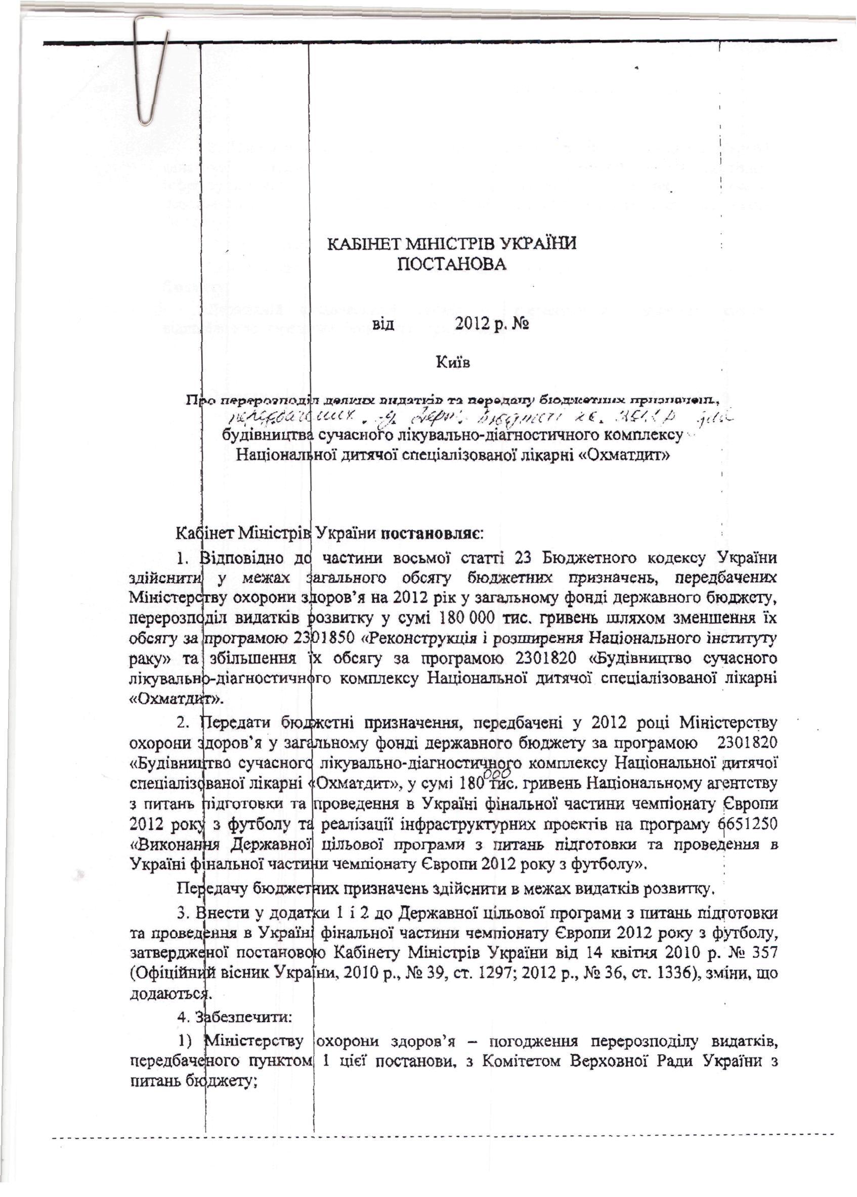 Суть истории такова: клинике Охматдет чиновники Кабмина пообещали до конца 2012 года выделить около 200 млн грн на закупку оборудования для лечения больных детей. Однако эти средства выделяются отнюдь не из государственного бюджета. Деньги на оборудование для Охматдет внезапно «появились» из другой программы помощи онкобольным. Их «урвали» из средств на модернизацию и реконструкцию Национального института рака (НИР). То есть деньги уйдут совсем не на строительство в Охматдете, что еще можно было бы как-то понять, а на закупку оборудования. Но самое интересное в этой истории в том, что 200 млн, вероятнее всего, «не дойдут» до Охматдета. И, естественно, не достанутся НИР. Как говорится: ни себе, ни людям. И об этом стоит рассказать поподробнее.