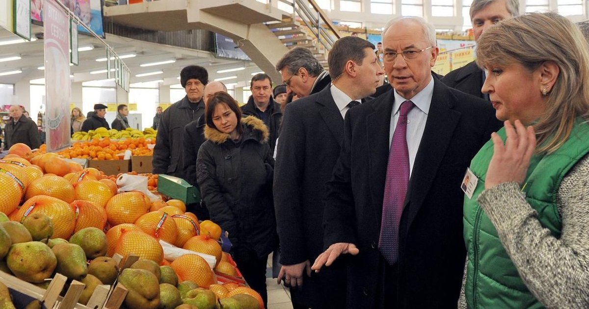 Это действительно хороший вопрос. Увидишь такую картину без должной подготовки - и легко можно тронуться умом. Ну это, конечно, грозит только простым, неподготовленным к азаровским реалиям людям. А вот сам Николай Янович не оценил старания менеджмента супермаркета, дворников и коммунальщиков, и вообще не впечатлился ценами. «Абсолютно все товарные позиции находятся в этом интервале, который мне показывают ежедневно. Я воочию убедился, что то, что мне наши специалисты каждый день показывают, соответствует реальной действительности», - заявил премьер-министр. Он также выразил сомнение в том, что каким-то образом цены до его приезда в супермаркет были снижены.