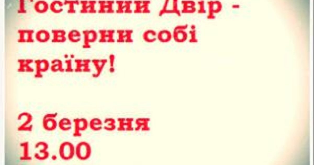 2 березня буде велика акція на захист Двору. У відповідь на силове придушення акції спротиву, котре сталося 18 лютого, коли вороги Гостиного побили і взяли в полон декілька десятків активістів, в тому числі і нардепів. До сих пір у лікарні дівчина із забиттям грудної клітини та літній чоловік із переломом гомілки.
