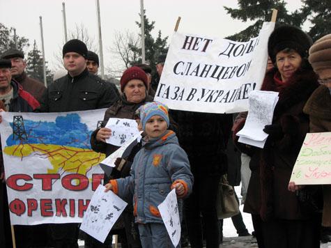Донбасс и Харьков ответили на подобную близорукость правительства целой чередой акций протеста. 10 марта в Краматорске на митинг вышло около 2 тысяч человек. Среди них были представители общественных организаций, экологи, депутаты местного горсовета от оппозиционных партий. Визит представителей компании «Shell» в город Славянск и вовсе завершился, так и не начавшись, - местные жители сорвали встречу. 17 марта акция протеста прошла в Харькове. Пикетчики держали плакаты «Украина - не полигон для опытов», «Спасем реку Северский Донец от засланцев», «Сланцевый газ?! Иди прочь!» и другие. В этот день митинг прошел и в Донецке. Участники акции помимо прочего направили на имя Президента резолюцию. «Мы требуем ввести мораторий на разведку и добычу сланцевого газа методом гидроразрыва пласта на 60 лет. Верховной Раде Украины объявить запрет на проведение любых работ по поиску, разведке и добыче сланцевого газа в Украине. Президенту Украины Виктору Януковичу… взять на себя ответственность за сложившуюся сложную обстановку в регионе и в Украине в целом, спровоцированную подписанием соглашения о добыче сланцевого газа», - говорилось в ней. На митинге в Артемовске Виктора Януковича записали в главные враги народа, а в Донецке проехали по премьер-министру плакатом: «Азаров, тебе дети и внуки не простят». Дошло до того, что депутаты Изюмского районного совета Харьковской области проголосовали за приостановку действия соглашения между Украиной, Shell и ООО «Надра Юзовская». Причем под давлением оппозиции и общественности за это решение голосовали депутаты ПР. Напомним, что все это происходит в вотчине «регионалов» и Виктора Януковича.