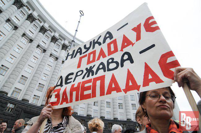 С учеными, привыкшими вести предметный разговор, сложно договориться. Вряд ли кто-то может оспорить приведенные ими цифры, демонстрирующими «приоритеты» развития страны, диктуемые нынешней властью. Так, в сравнении с 2009 годом, Генеральной прокуратуре увеличили финансирование из Госбюджета на 231%, Службе безопасности - на 68%, Министерству внутренних дел - на 60,3%. А Национальной академии наук - на 44 процента. Но, когда в прошлом году НАНУ вышла с протестом, Кабмин пригласил представителей ученой интеллигенции за стол переговоров.