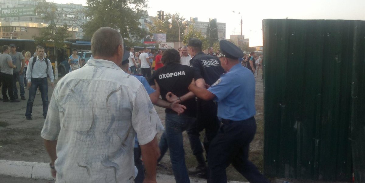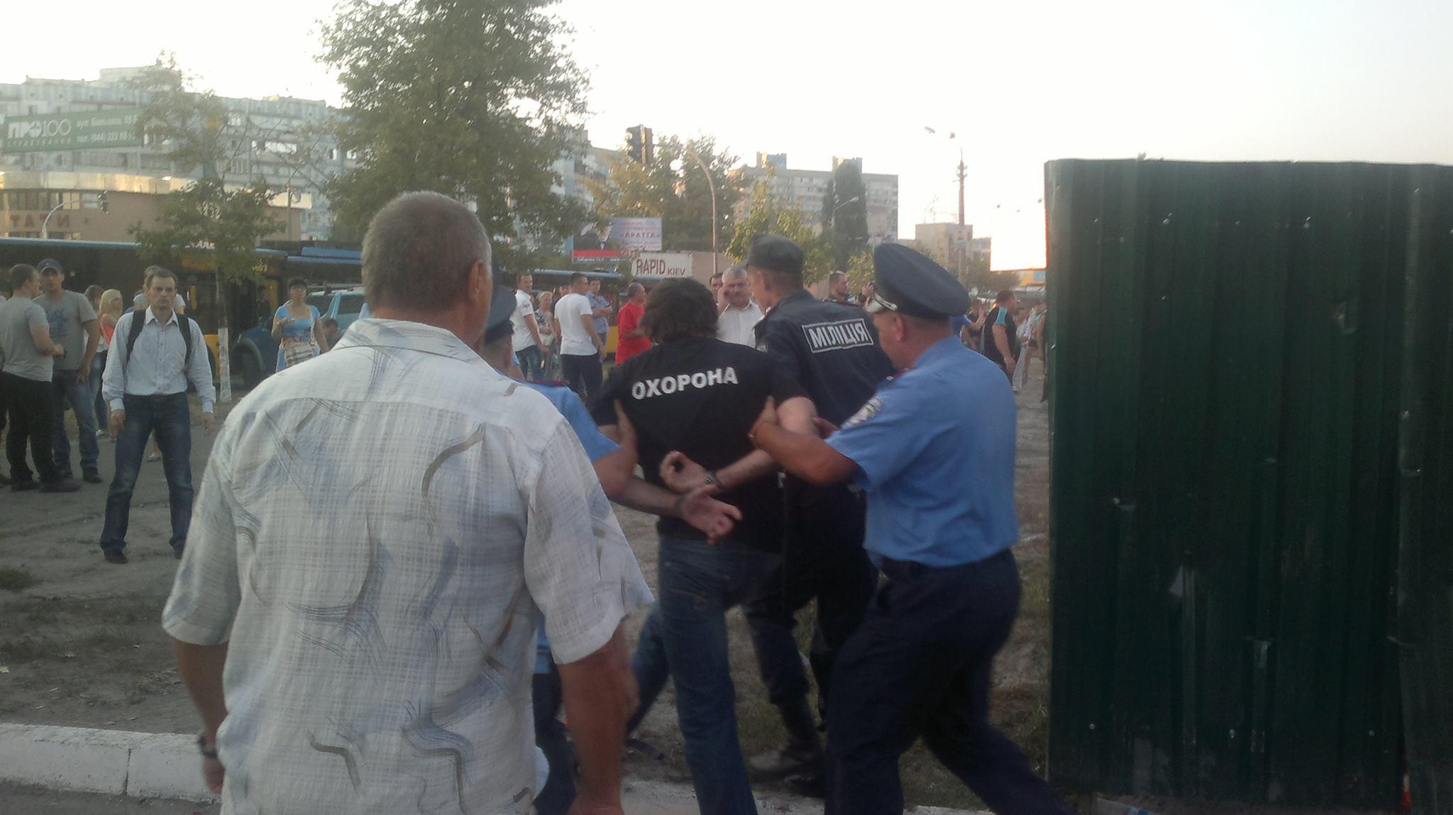 Вчера жители Троещины взяли штурмом строительную площадку на улице Маяковского. Очередная незаконная киевская застройка не оставила равнодушными жителей окрестных домов и, в силу бездеятельности государственных органов, проблему решили своими силами. Самоорганизовавшись, люди попытались зайти на строительную площадку, но в ответ на них из-за забора полетели камни, песок и строительный мусор. Молодые люди характерной внешности (в народе просто - «титушки») пытались защитить незаконную застройку, поливая людей из огнетушителей и распыляя слезоточивый газ, но этим только еще больше разозлили жителей Троещины. В результате люди сломали забор и разогнали бритоголовых охранников незаконной стройки. Что характерно - милиция присутствовала во время этих событий, но не вмешалась даже в тот момент, когда охрана объекта начала поливать людей растопленной смолой. Зато пыталась защитить «титушек» от гнева людей. Министр МВД Захарченко сколько угодно может рассказывать о том, что большинство работающих в милиции - это порядочные люди, «которые обеспечивают спокойствие за безопасность граждан, борются с преступностью», но сами милиционеры своими действиями доказывают обратное.