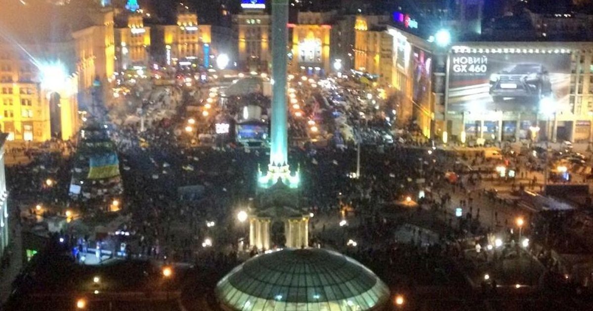 Море народа, флаги, левые и правые политики, пункты питания, требования «стоять, пока не отпустят в Европу», самозахват зданий, студенты, щеки и лбы которых раскрашены цветами флага Украины.