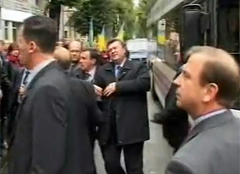 Пока он нес народу слово правды и демократии, объясняя на пальцах, что захват правительственных зданий - это не выход, пришел «Беркут» и забрал у него лавочку, а самого Виктора Федоровича, не узнав под ведром, сильно ударил по голове дубинкой. От удара дно у ведра отлетело, и перед побледневшими спецназовцами предстало возмущенное лицо президента. «Это что еще за произвол? - воскликнул Виктор Федорович. - Вы что же, хотите сорвать мне общенациональный круглый стол?». «Беркут» испугался неминуемой ответственности за противоправное деяние и ударил Виктора Федоровича по голове еще раз, чтобы замести следы. Поскольку ведра на голове у главы государства уже не было, свет в его глазах померк, и он потерял сознание.