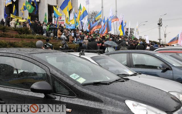 С заправки выехали беспрепятственно, обогнали часть машин с символикой Украины и ЕС, велосипедистов, проехали мимо нескольких постов ГАИ, обращая внимания на то, чем занимались правоохранители - те, кто в форме, стояли неподвижно, наблюдая за машинами, а какие-то люди в штатском снимали происходящее на камеры и мобильные телефоны. В результате до поворота на Новые Петровцы машины доезжали беспрепятственно. Там парковались вдоль дороги, так как гаишники перекрыли въезд в село. Колонну машин мы дождались непосредственно в селе, там, где внутренние войска, КАМАЗы и автобусы были выставлены для охраны входа в резиденцию…