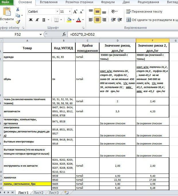 Півтора роки тому, коли «Слідство.Інфо» готувало розслідування про власників вантажно-митного комплексу «Євротермінал» у Одесі, підприємці розповіли нам про існування у митників списків з орієнтовними цінами на імпортовану чи експортовану продукцію певного типу. Коли ми намагалися розпитати у митників на постах, що це за списки, вони їх просто ховали. Зазвичай це таблички, у яких зазначено, що середня вартість, наприклад, тонни китайського одягу складає 33 тисячі гривень. Якщо підприємець декларує меншу вартість, його можна підозрювати у заниженні вартості для сплати менших митних зборів. Ось приклад такої таблиці з цінами, якою митники користуються зараз.