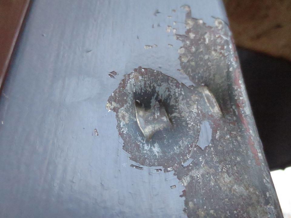 Далее. В сети есть фотография такой пули, подобранной двадцать второго января на улице Грушевского, после атаки "Беркута". Я утверждаю - след на стойке кафе оставлен этой пулей. Не "такой же" - а именно этой. Это видно по повреждениям, оставленным на пуле и на стойке. Пуля ударила под углом сорок пять градусов ребром головной части - именно поэтому больше всего расплющена именно головная часть, и именно поэтому след на стойке имеет трапециевидную форму - а затем и всем корпусом и хвостовым оперением.