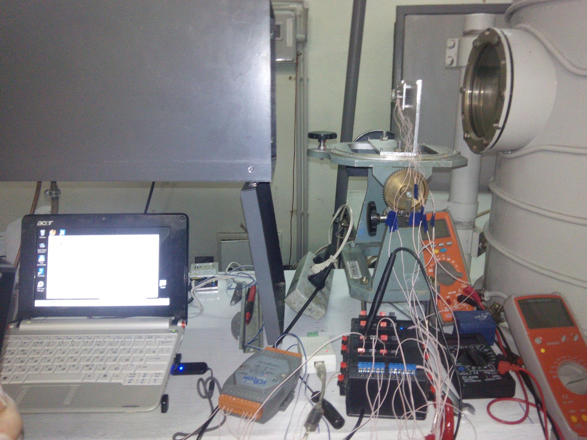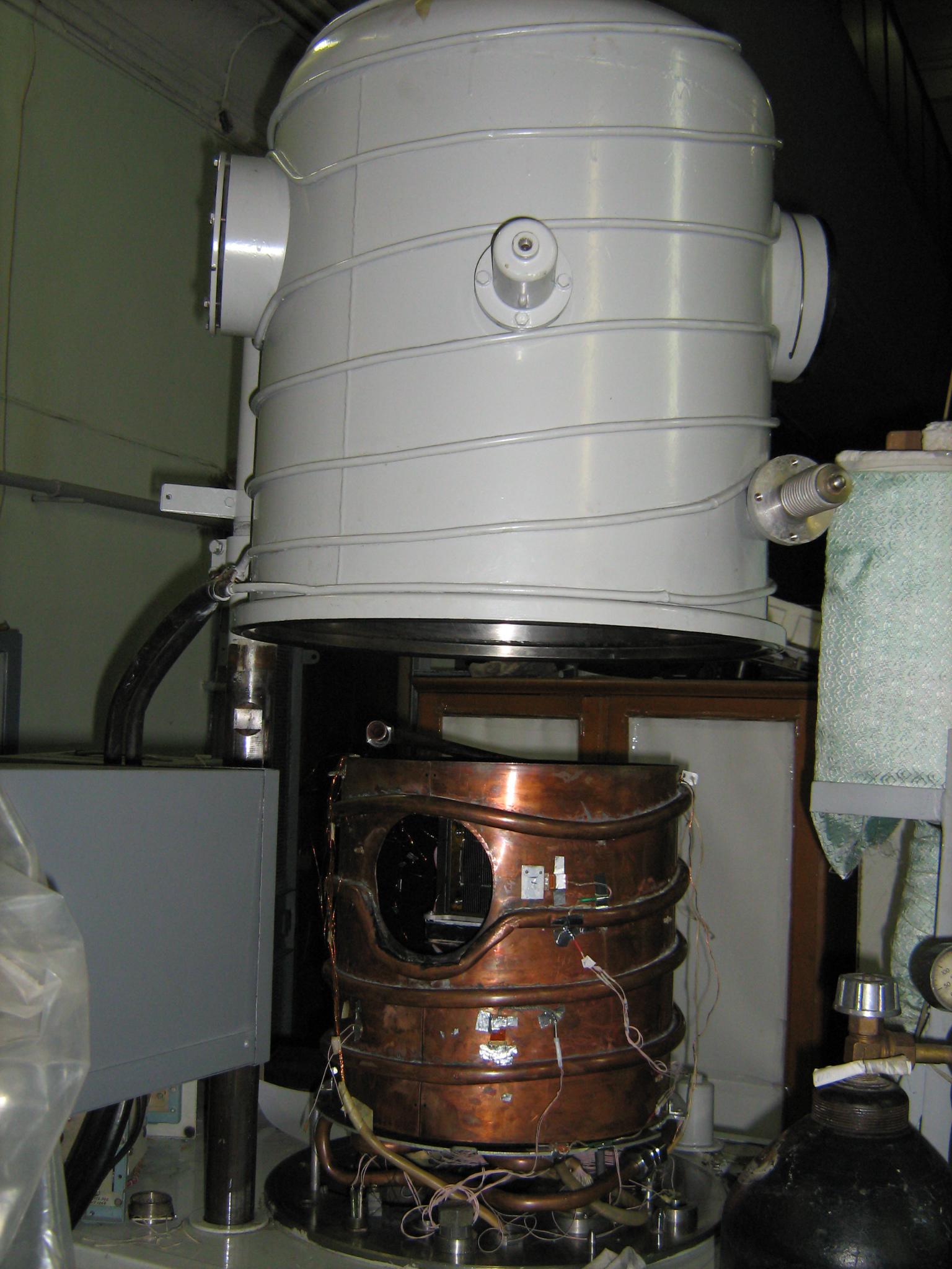 На фото общий вид оборудования, слева - пушка имитатор солнечного излучения, а вакуумную камеру с иллюминатором сложно не узнать.