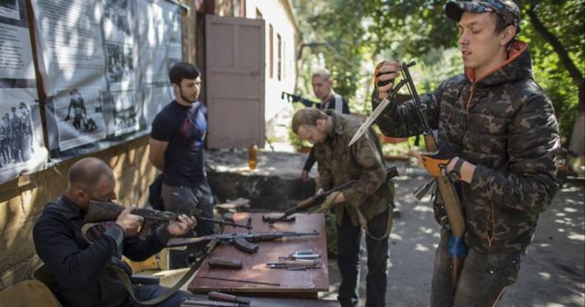 Мускулистый темно-русый мужчина, с флагом так называемой Новороссии на рукаве, запугивающим взглядом изучает прохожих и крепко сжимает в руках оружие, когда они проходят мимо. 42-летний Хутор и 33-летняя Ника опускают головы. Они перестают говорить. В месте, где даже поход в супермаркет превратился в напряженный ритуал, пара сжимает в руках сумки с продуктами, как бы показывая на них. Видите? Просто молоко и хлеб закончились. Спасибо. Нам пора.