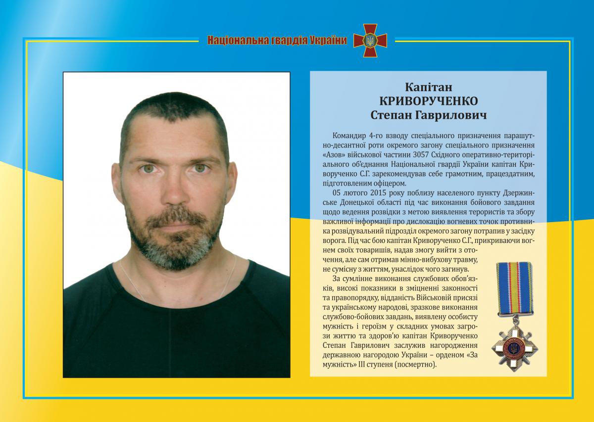 Капітан кримського "Беркута" Степан Криворученко загинув за Україну як доброволець "Азова" рівно три роки тому, 5 лютого 2015-го у розвідрейді під Дзержинським.