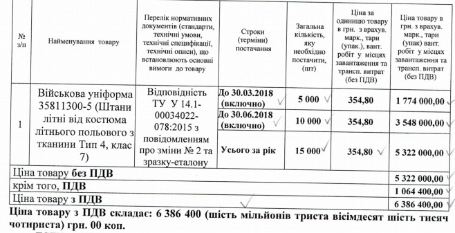 Національна Гвардія України 30 тисяч літніх польових костюмів у травні придбала по 864 грн. за один, а бойові сорочки купувала наприкінці червня по 499 грн.