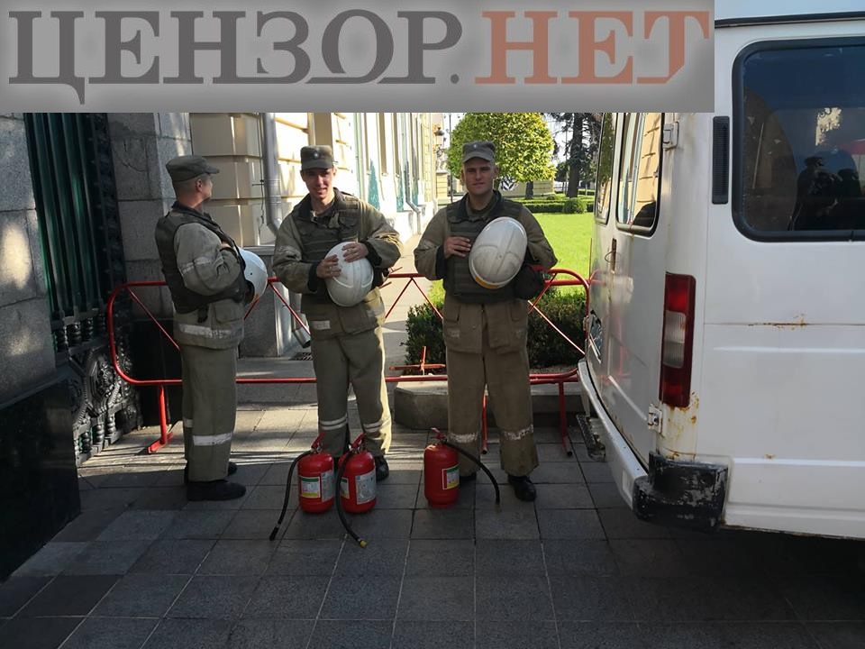 ...Петр Порошенко еще не начал выступать с ежегодным посланием к Верховной Раде - а у одного из входов в парламент солдаты-срочники уже готовились тушить всевозможные пожары.