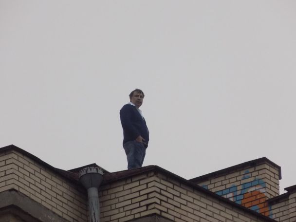 - Предупреждаю, еще адын шаг - и я брошусь с крыши вныз! - кричал Саакашвили, топчась в шаге от пропасти. Полиция нерешительно мялась рядом, но подходить слишком близко, как обычно, стеснялась.