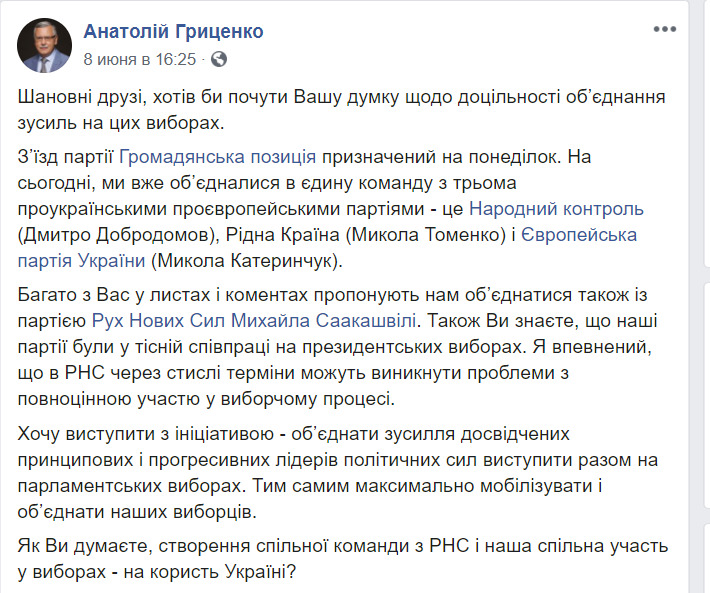 А тут еще привлекла внимание к партии просуществовавшая полдня идея совместного похода на выборы партии Гриценко и партии Саакашвили.