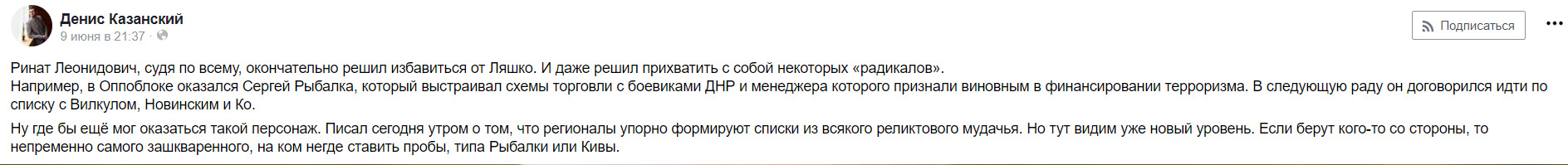 Судя по всему, предстоятель благословил и партийный список РПЛ, о котором Ляшко высказался так: