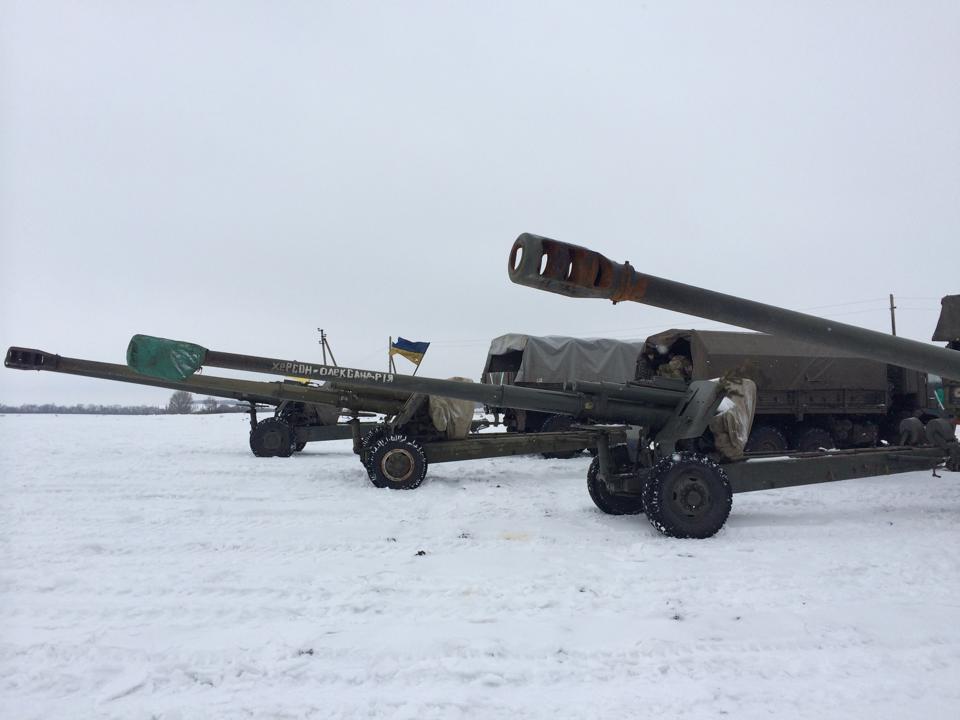 Находясь в части, не могу не организовать себе экскурсию на склад техники. Капитан Гаврилко, во время службы на передовой бывший заместителем командира батареи, проводит меня к засыпанному снегом складу орудий. Пострадавшие в бою и новые гаубицы находятся почти рядом, на соседних площадках. Старые не подлежат ремонту, зато новые готовы к бою.