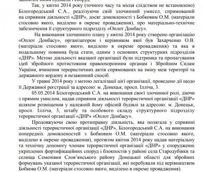 Белогородского СБУ считает причастным к преступлениям в начале войны, еще под Славянском, вот выдержка из решения: