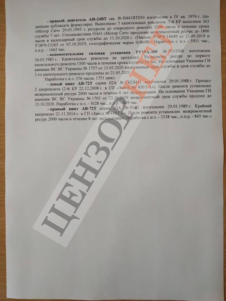 Цензор.НЕТ получил официальное заключение по состоянию двигателей самолета от источников в ГП "Антонов", которое с 10 до 20 августа 2020 года выполняло работы по продлению ресурса самолета, и подготовило Акт исследования от 20.08.2020 №26/5608/2020/19.