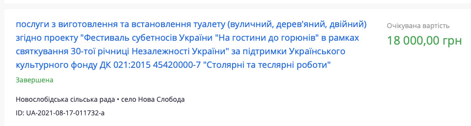 А ось комплекс заходів з декоративного оформлення свята виконає ФОП Володимир Кошовий за 1,7 мільйона гривень. Про які декорації йдеться і чи були серед них автомати газіровки і вітальні хрущовки - невідомо.