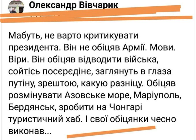 Зеленський та його оточення просто бояться закінчення війни. Про все, написане паном Юрієм, владі доведеться відповідати. Нажаль, тому їм теж зручно аби війна тривала якомога довше.