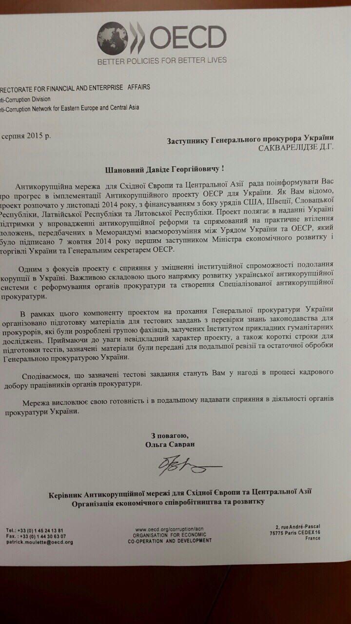 Документ подтверждает, что OECD также привлечена к разработке тестовых материалов.