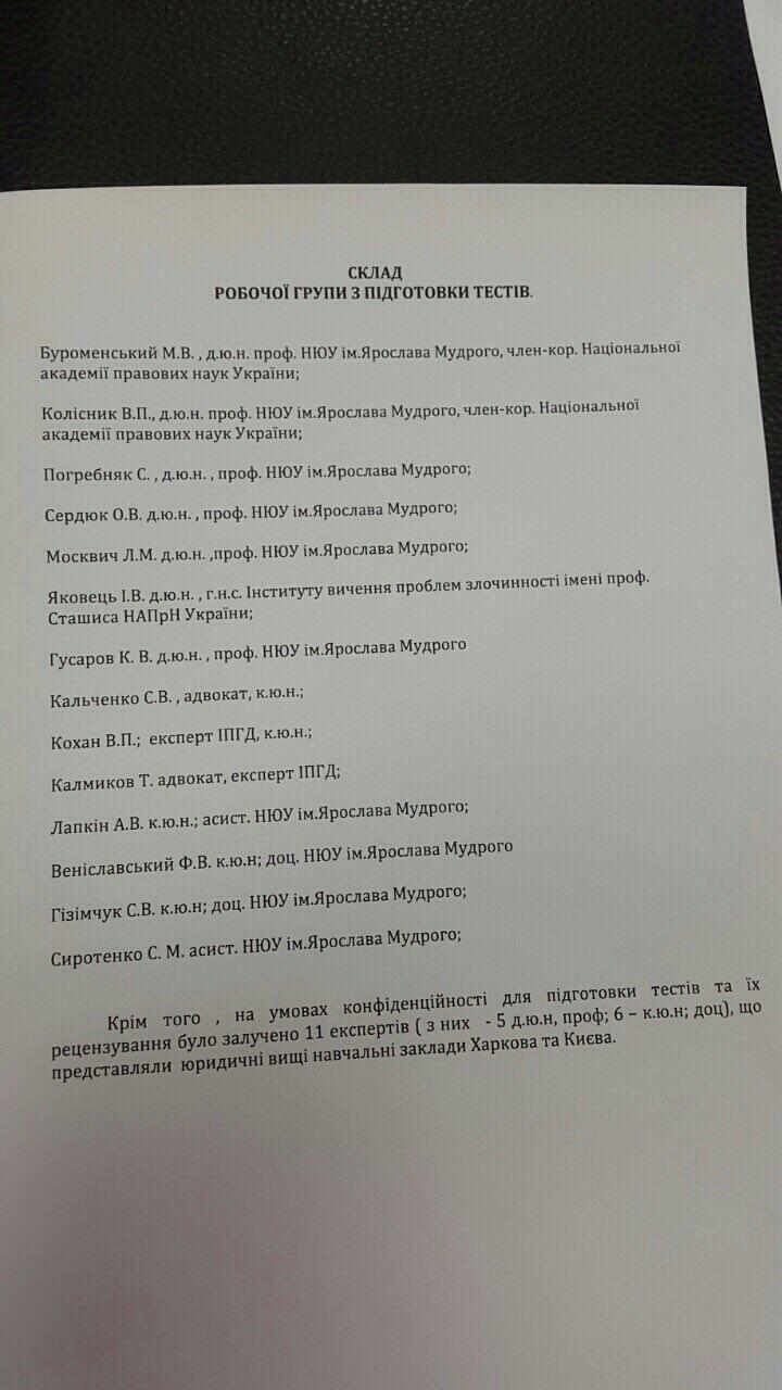 Разумеется, ни в коем случае нельзя привлекать к разработке тестов сотрудников прокурорской академии, которая являясь плотью от плоти ГПУ, соответственно не менее коррумпирована, что сделает тестирование будущих прокуроров полностью бесполезным и нерепрезентативным.