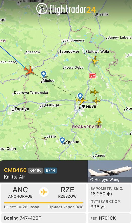 У Жешув йде масштабне перекидання *********** для ЗСУ зі США: транспортні літаки йдуть практично один за одним.
