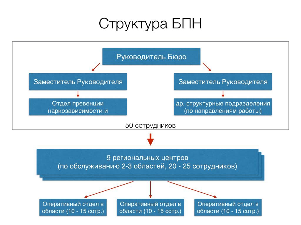 Создание абсолютно новой структуры - Бюро противодействия наркопреступности является еще одним этапом в процессе формирования новой системы Национальной полиции. Основная функция БПН – борьба с распространением наркотиков на всех уровнях, а также сбор и обработка информации для уголовного преследования виновных в наркопреступлениях.