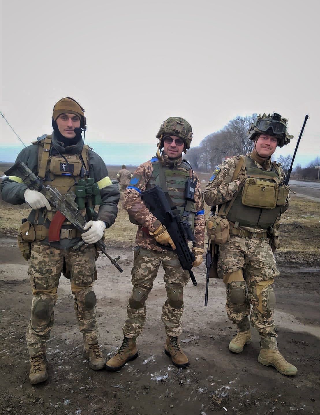 На фото: Антон Самарін, позивний Самара, (крайній зліва), командир його батальйону Олександр Сліпко, позивний Борсук, (крайній справа) і командир 2-го батальйону Ростислав Силівакін, позивний Крот (в центрі)