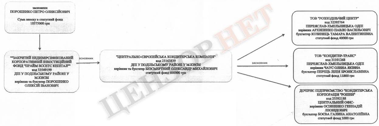 По данным фискалов, через эти компании по схеме "нетипичного экспорта" продавалась за рубеж продукция известной кондитерской компании "Рошен". На тот момент все три фирмы принадлежали "Центрально-Европейской кондитерской компании", которая, в свою очередь, принадлежала фонду "Прайм Эссетс Капитал" Петра Порошенко.