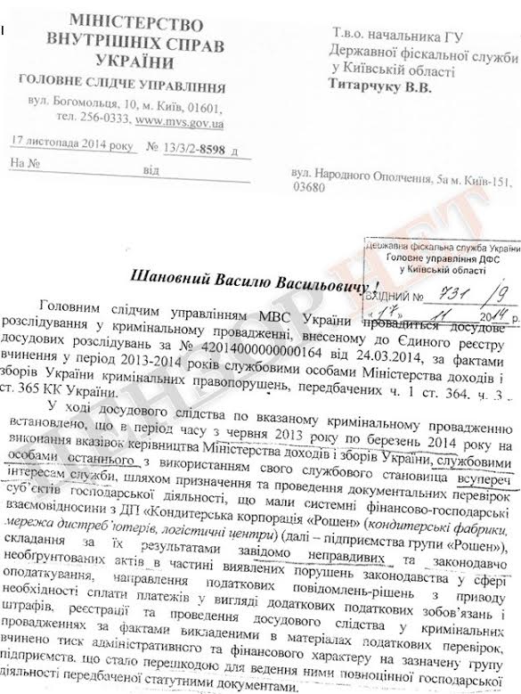 Сплошь и рядом говорится о "заведомо незаконных распоряжениях" провести проверки "рошеновских" компаний, каковые проверки, оказывается, причинили тяжкий ущерб не только проверяемым компаниям, но и государству - путем "подрыва авторитета госорганов". При этом, заметим, вопреки многолетним традициям проверок налоговая не устраивала дочерним предприятиям "Рошена" по этому делу никаких "маски-шоу" и прочего "изъятия документов", способного парализовать работу любого предприятия.