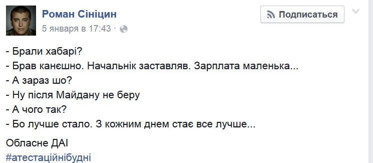 https://censor.net/forum/813295/roman_sinitsyn_na_attestatsii_berkut_vedet_sebya_naglo_vyzyvayusche_vse_kak_odin_tverdyat_chto_ni_v Мне нравится 25https://censor.net/resonance/367489/oksana_sirod_za_minuliyi_rk_stavlyu_verhovnyi_rad_tri_z_mnusom_chomu_ne_dvyiku_tomu_scho_v_tsomu_parlament(35)https://censor.net/resonance/366502/egor_sobolev_ahmetov_predstavitel_rossii_v_biznese_a_levochkin_v_politike_eto_polevoyi_ispolnitel(90)https://censor.net/resonance/365791/ot_zahvata_do_byudjeta_verhovnaya_rada_na_pike_ozvereniya(99)https://censor.net/resonance/364282/do_svidaniya_bayiden_nam_budet_tebya_ne_hvatat(63)http://uainfo.org/blognews/1450182078-sredi-politseyskih-rasprostranyayutsya-nelepye-mify-o-pereattestatsii.html Среди полицейских распространяются нелепые мифы о переаттестации - Геращенко (0)http://uainfo.org/blognews/1449233967-skolko-stoit-politsiya-bez-korruptsii.html Сколько стоит полиция без коррупции