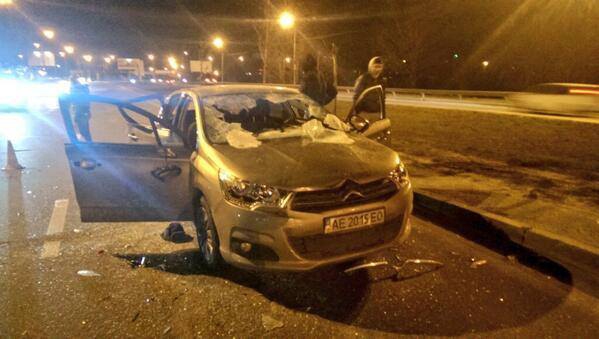 Колонну автобусов "Беркута", которые шли на Киев, пытались заблокировать активисты Автомайдана, но в результате был жестоко избит автомайдановец Ярослав Гончар, его машина искорежена.