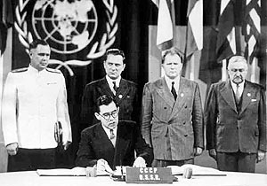 Молодой дипломат, замеченный Сталиным и Молотовым, стал участником фундаментальных событий послевоенного мира. Он входил в состав советских делегаций на конференциях в Ялте и Потсдаме. В Думбартон-Оксе и Сан-Франциско он корпел над созданием Устава ООН, который позже подписал от имени Советского Союза. Он возглавлял советские делегации на 22 сессиях Генеральной Ассамблеи ООН, заслужив у Запада еще одну кличку — Бульдог. Да, хватка его была мертвой, хотя политика — “миролюбивой”.