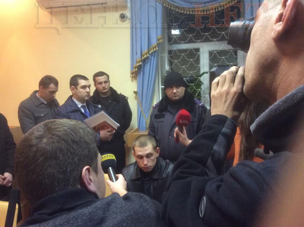 После чего суд удаляется, чтобы принять решение. Пользуясь возможностью, корреспондент "Цензор.НЕТ" подходит к обвиняемому.