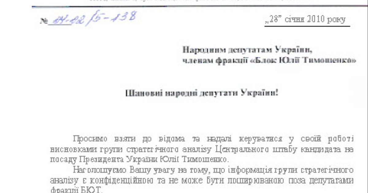 Стратегический анализ результатов первого тура голосования президентских выборов 2010 от штаба БЮТ.