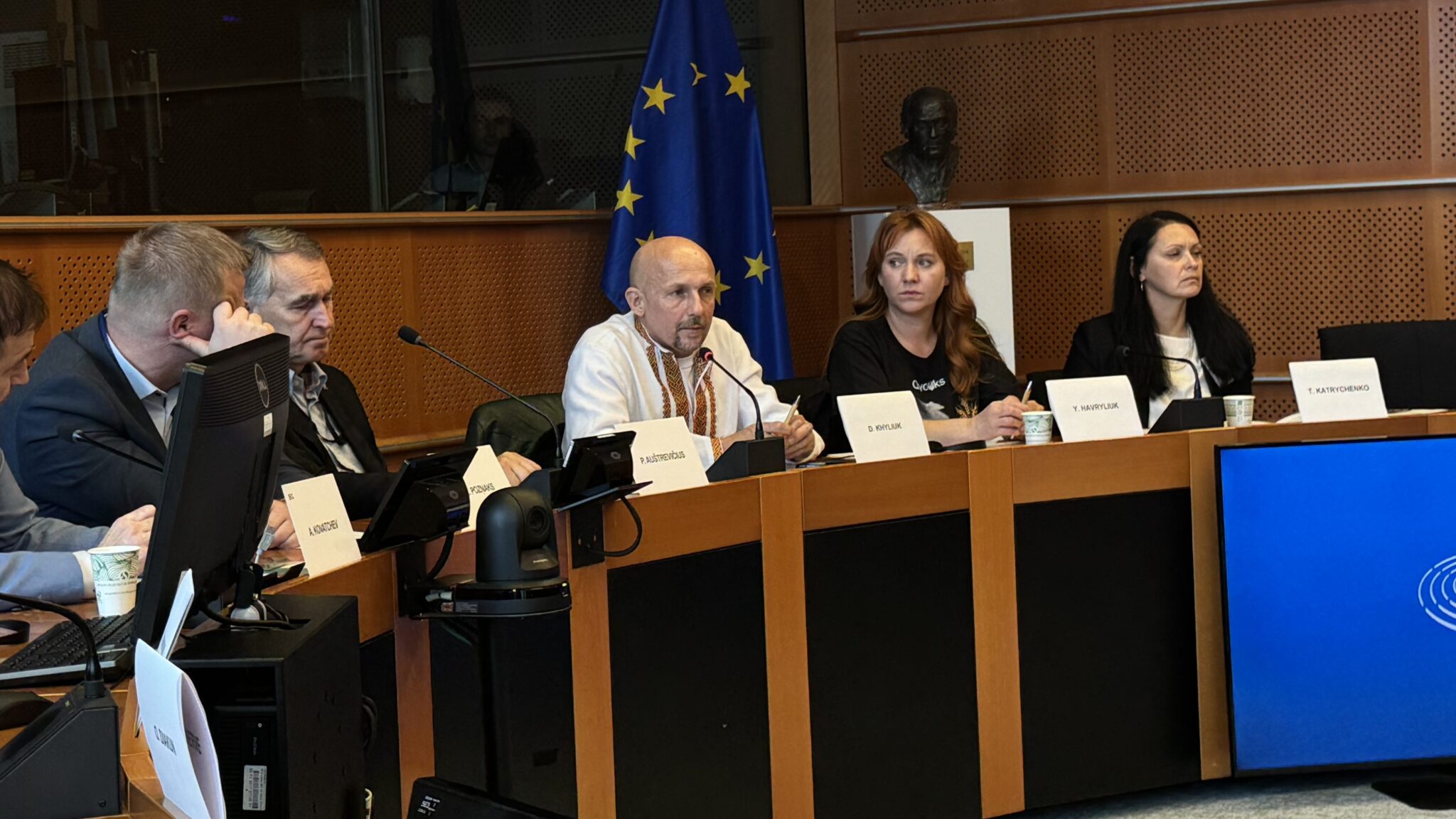 Звільнений з російського полону журналіст Дмитро Хилюк виступає у Європарламенті. Фото: "Медійна ініціатива за права людини"
