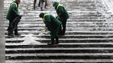 4)все тротуары покрывает толстый слой смеси из хорошо взбитого снега, соли и грязи. Сегодня очень тепло, и в течение дня снег тает. Личность, которая всем своим существом соответствует определению «барышня», с помощью самодельной лопаты кидает литры мерзкого черного солевого раствора на проходящих мимо. Нам повезло, не хватило нескольких сантиметров.