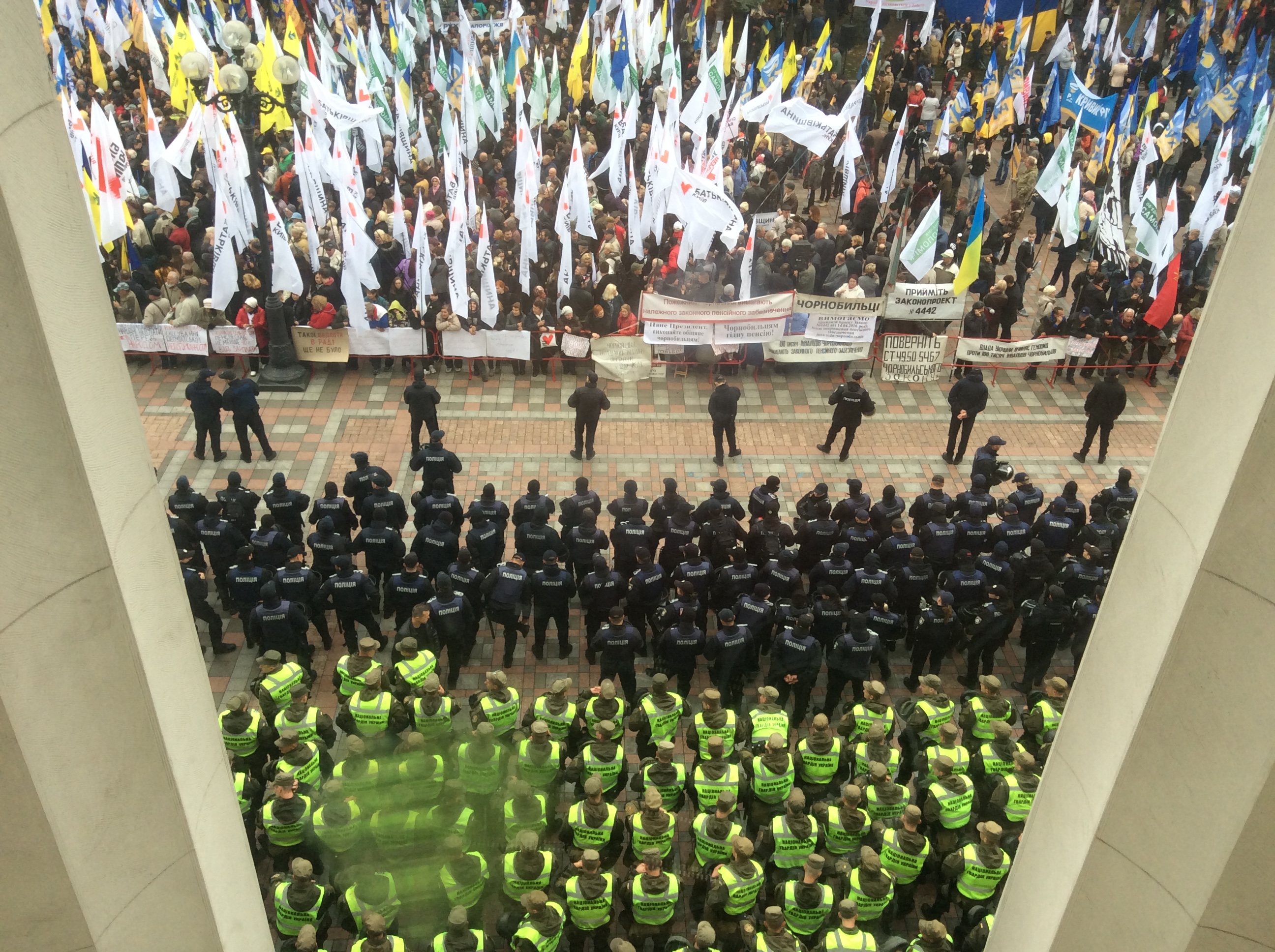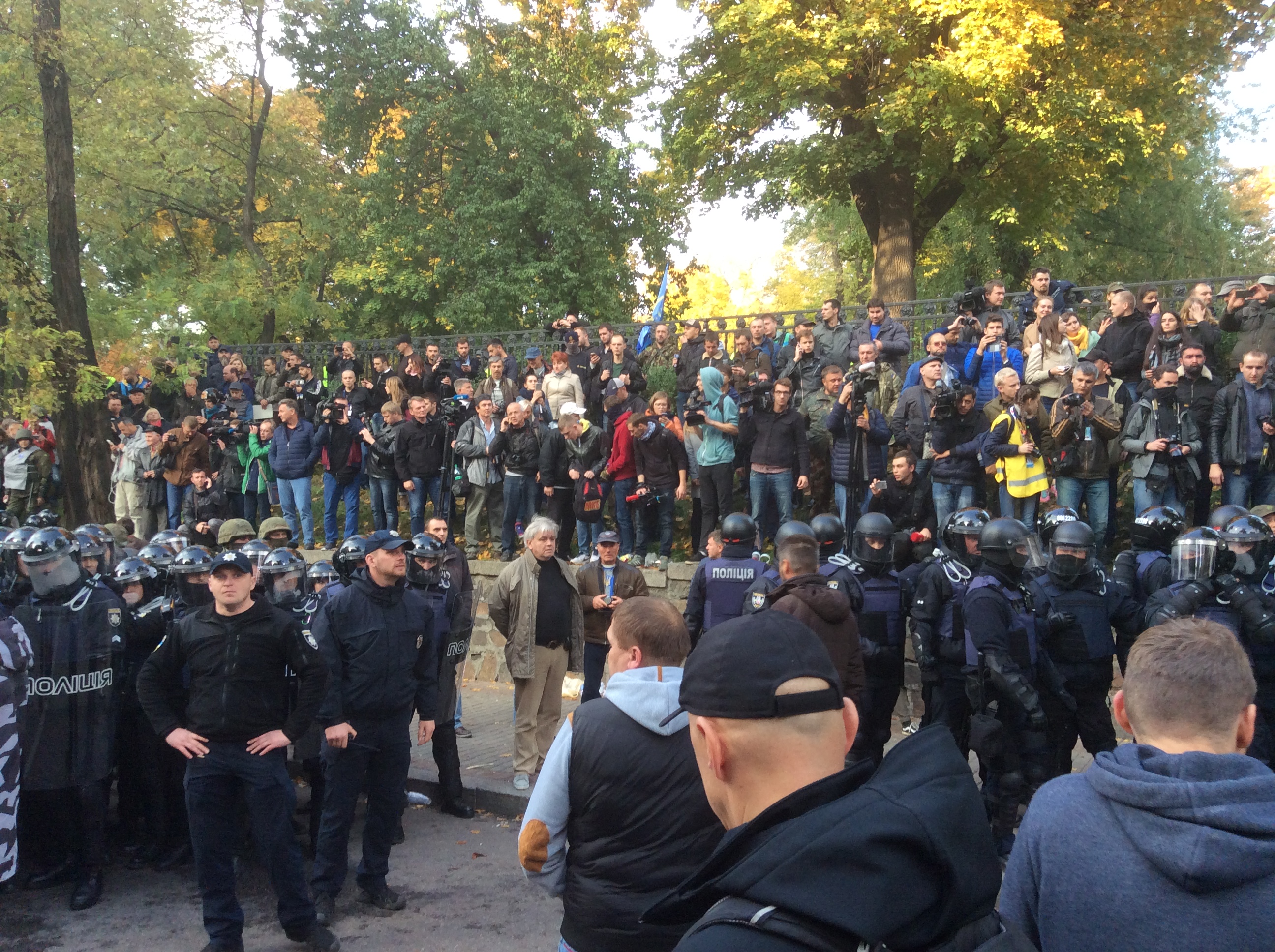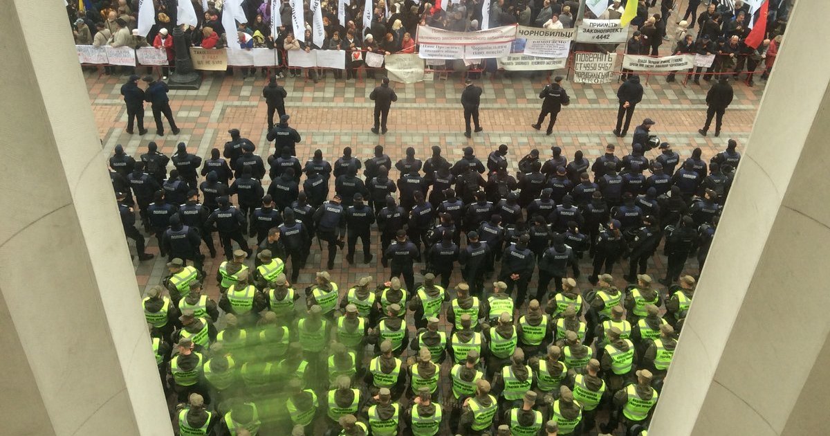 Во-первых, запомнились перепуганные лица полицейских, сбившихся в оборонительную коллективную стойку. Вокруг - разъяренные здоровые мужики из батальона "Донбасс" (вторичный привет Семену Семенченко), яростные пожилые женщины, простые сельские дядьки, искренне недоумевающие, почему кто-то из них получил только что дубинкой по горбу.